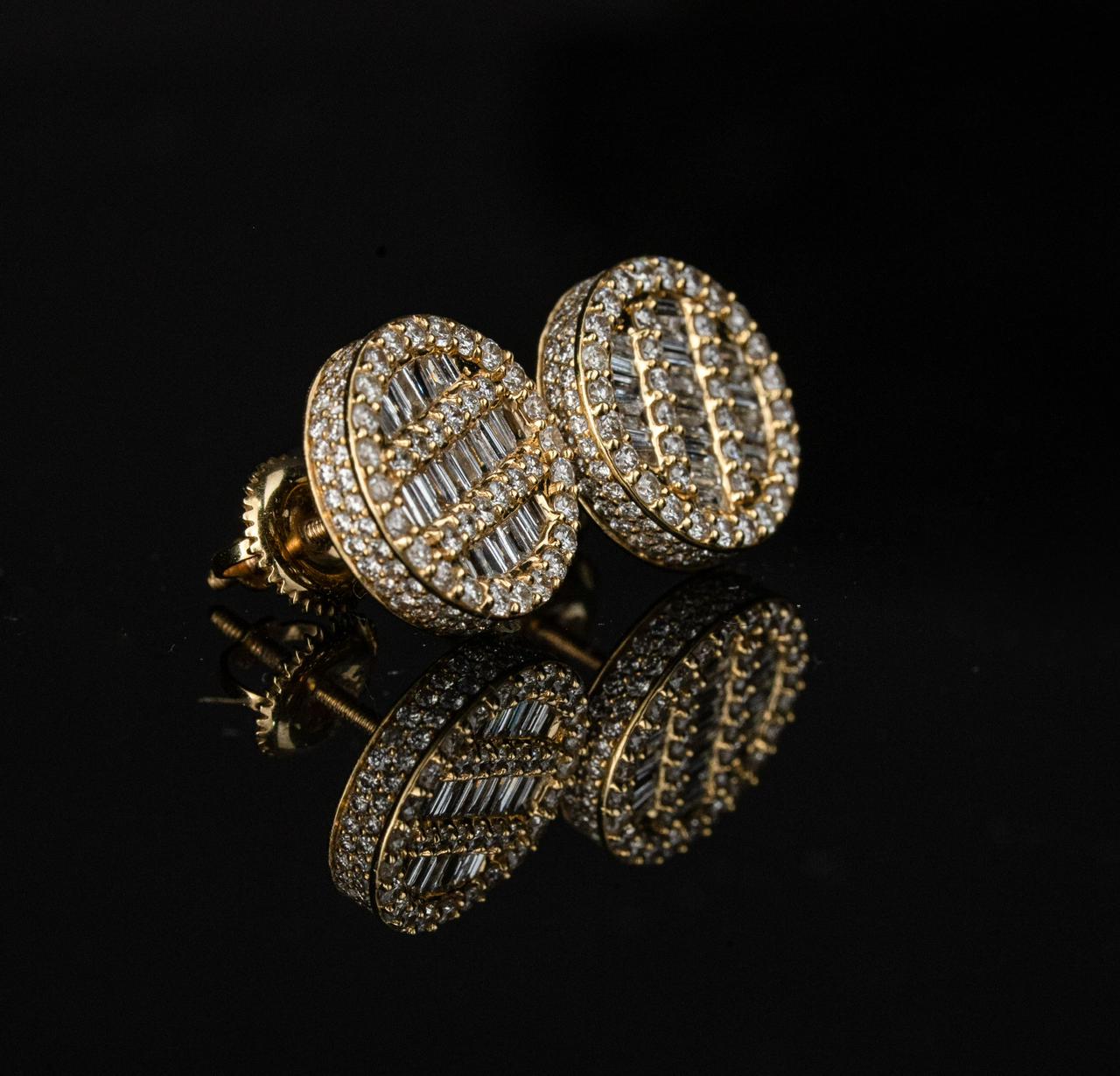 ARETES REDONDOS DIAMANTES BAGUETTE 14K